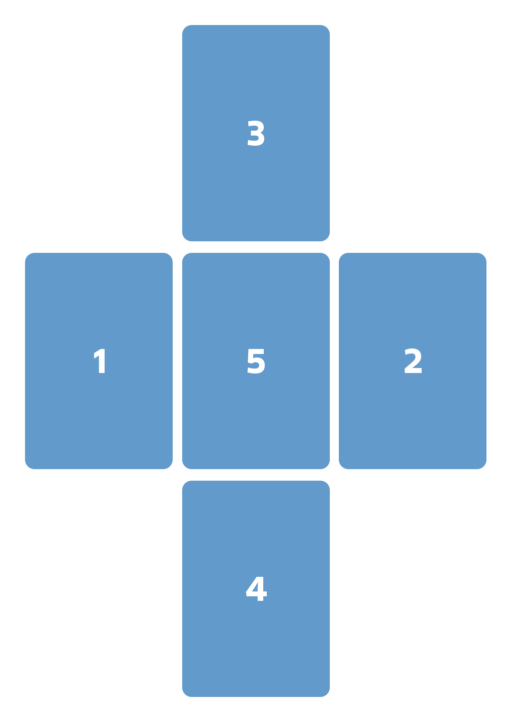 Inspirado na tiragem em cruz, este método utiliza cinco cartas para revelar diferentes aspectos de uma situação: